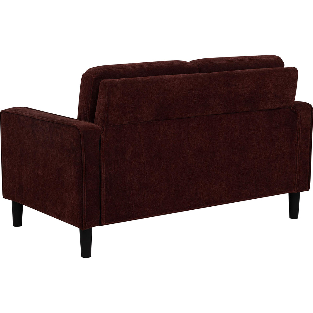 • Loveseat in rust fabric offers a compact two-seat design with clean structure