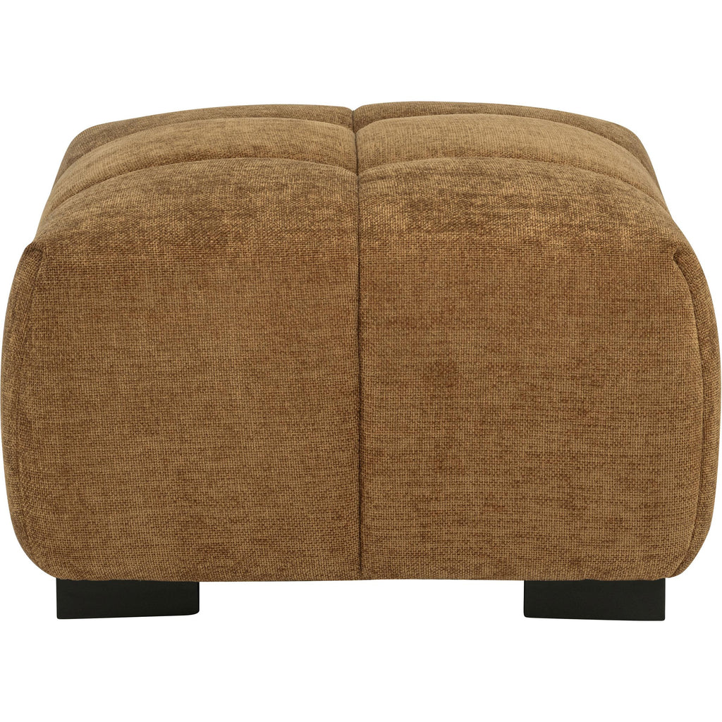 • Ottoman in amber fabric showcases sculptural volume and plush vertical grid tufting
